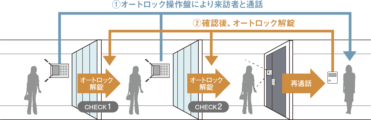主な来訪者のアプローチ上の2ヶ所にオートロックシステムを採用しました。