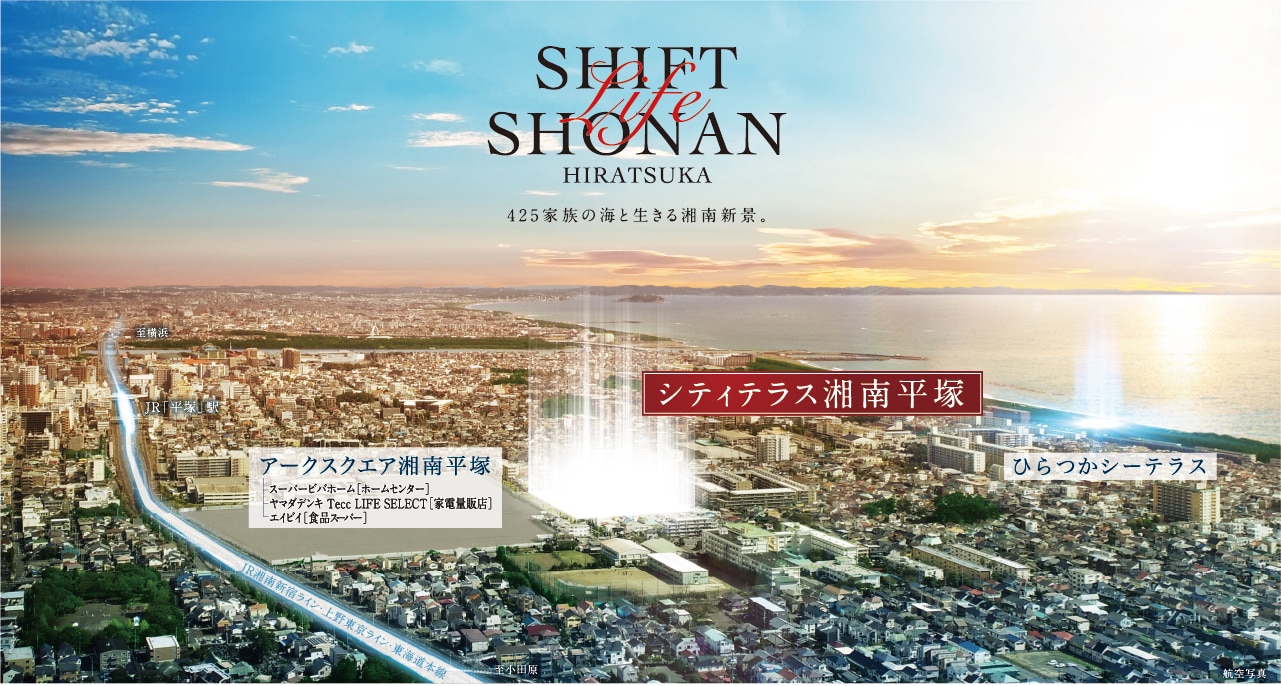 - ※掲載の航空写真は神奈川県中郡大磯町の花水橋上空付近から東方面を撮影(2020年10月)したものに現地部分の光などCG合成・加工をしたものです。また、周辺環境は将来変わる場合があります。