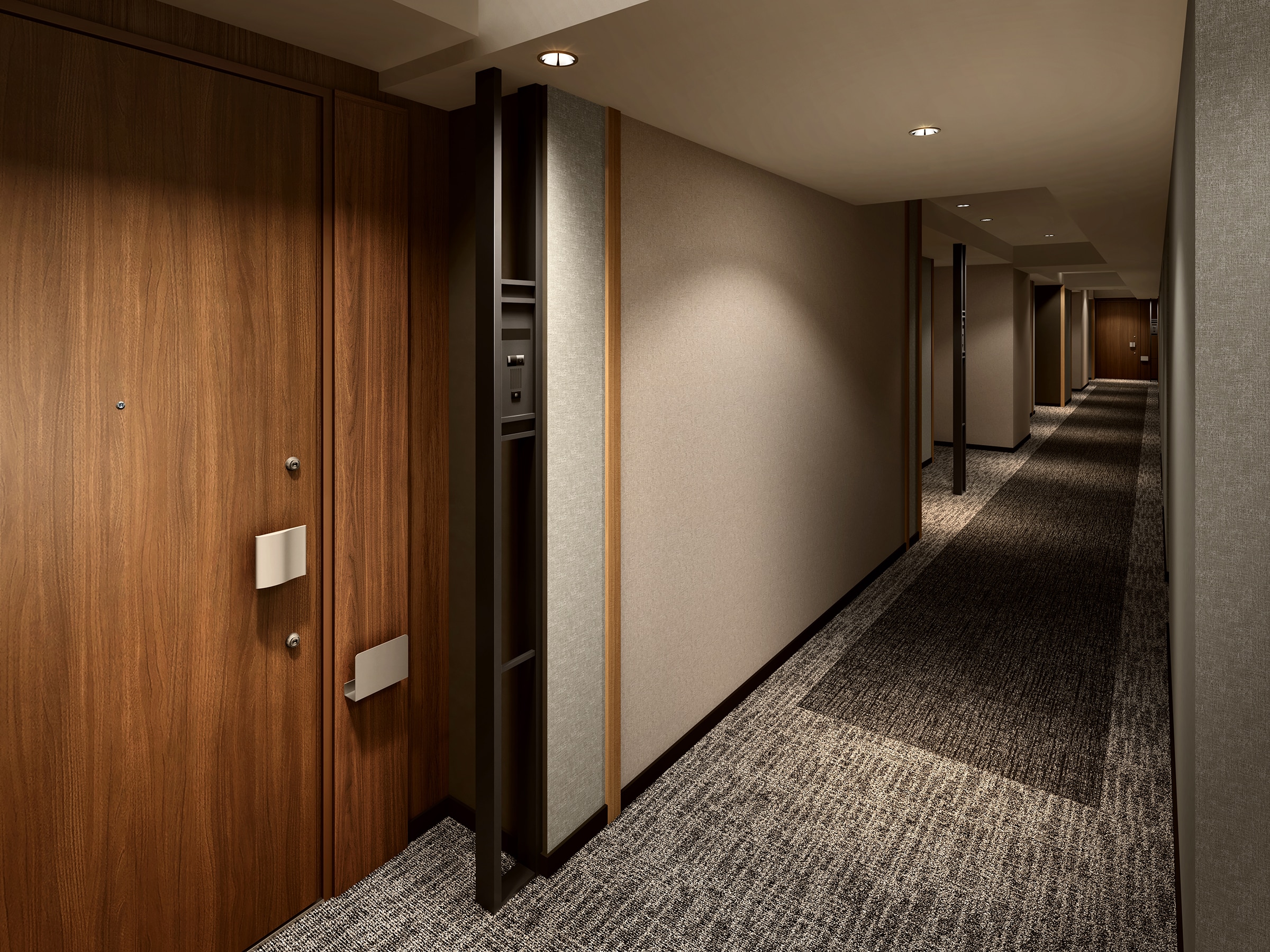 プライバシー性と防犯性に配慮したホテルライクな内廊下として設計。