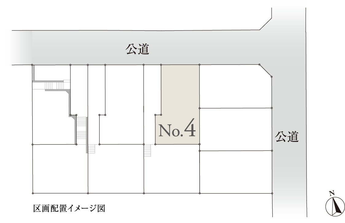 ※掲載の区画配置イメージ図は、計画段階の図面を基に描き起こしたもので、実際とは多少異なります。また、一部敷地外の道路等を合わせて着彩しています。