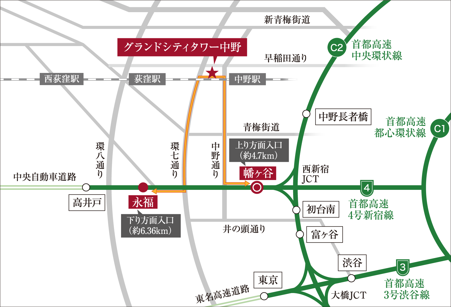 首都高速4号新宿線「幡ヶ谷」入口(約4.7km)から