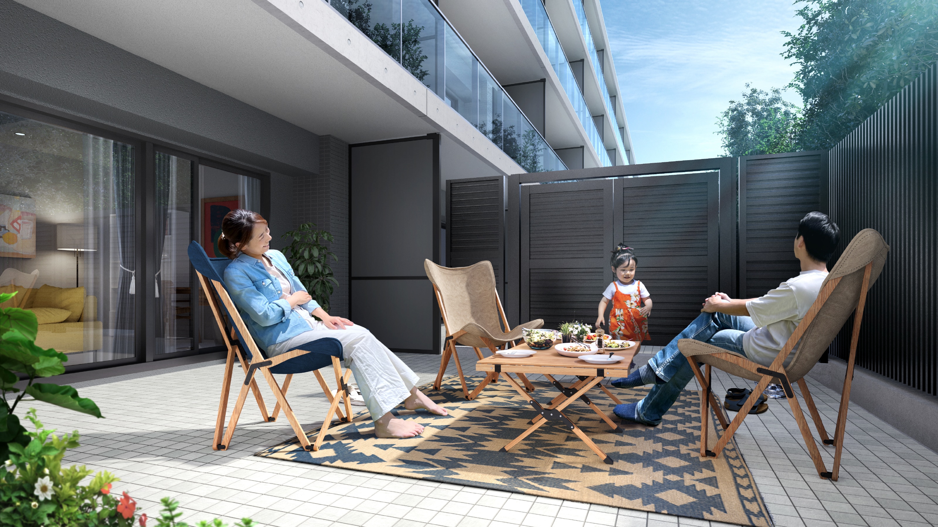 ※掲載の完成予想図1・4・5、外観完成予想図2・3は計画段階の図面を基に描き起こしたもので、実際とは多少異なります。また、形状の細部および設備機器等については省略しております。※敷地内の樹木等はある程度生育した後をイメージして描いたものです。また、葉や花の色合い、樹形等はイメージであり実際とは異なります。なお、植栽計画は変更される場合がありますので、あらかじめご了承ください。