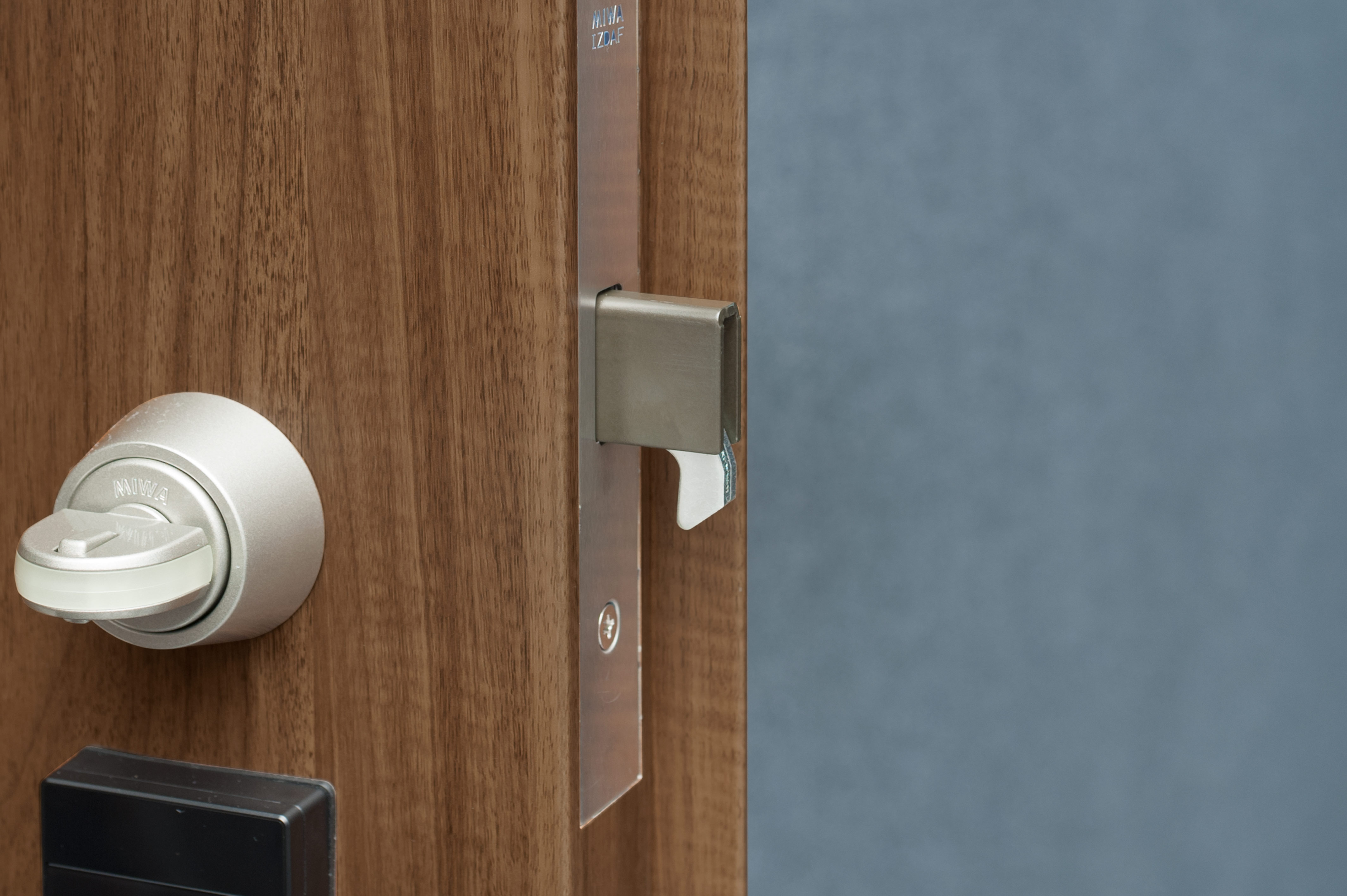 枠と扉の間にバールなどを差し込んで解錠する、こじ開けの手口への対策として、玄関ドアのカギを施錠すると鎌状の金具がせりだす鎌デッド錠を採用しました。