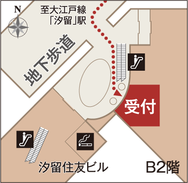 まずはB2階 受付までおこしください。